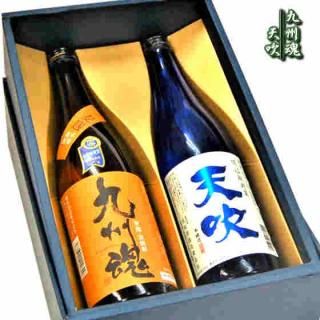 九州魂麦焼酎と天吹低温瓶貯蔵本醸造の720ml飲み比べセット。化粧箱にお入れしてお届けをさせていただきます。