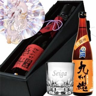 三ッ星 九州魂麦焼酎720ml&名入彫刻ロックグラス化粧箱入 赤いラベル 感謝 各種御祝