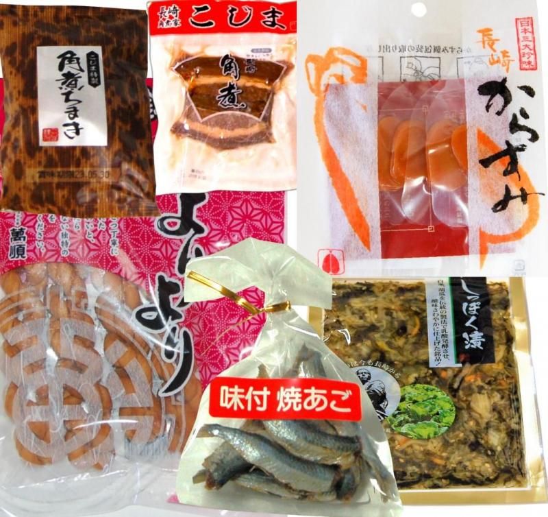 長崎おつまみセット からすみスライス しっぽく漬 角煮 角煮ちまき 味付焼きあご 元祖よりより 送料無料 メール便 代引・クール便・日時指定できません