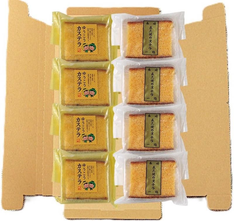 長崎五三焼カステラ・ゆうこうカステラ各4個 全8個 メール便